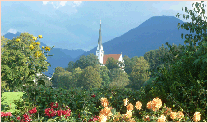 Unser Haus liegt idyllisch, romantisch, fern von jedem Verkehr und doch zentral. Genießen Sie den besonderen Blick über die Wiesen und zu den Tegernseer Bergen.